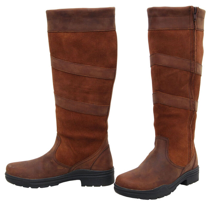 These Knee-High Country Boots for riders with Side Zippers are available in different colours and sizes. These Country Boots feature a convenient Side Zipper to make them easy to put on, and off. They are made with Waxy Crazy Horse Brown Leather & Nubuck Tan upper. It also has Fish Grate Waterproof lining, to keep your feet comfortable all day long and a TPR sole which provides traction and stability when you need it most.
